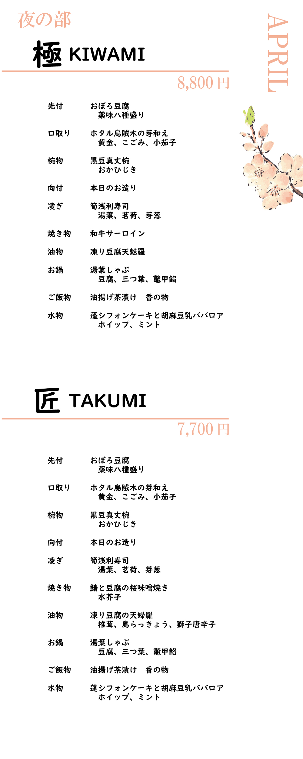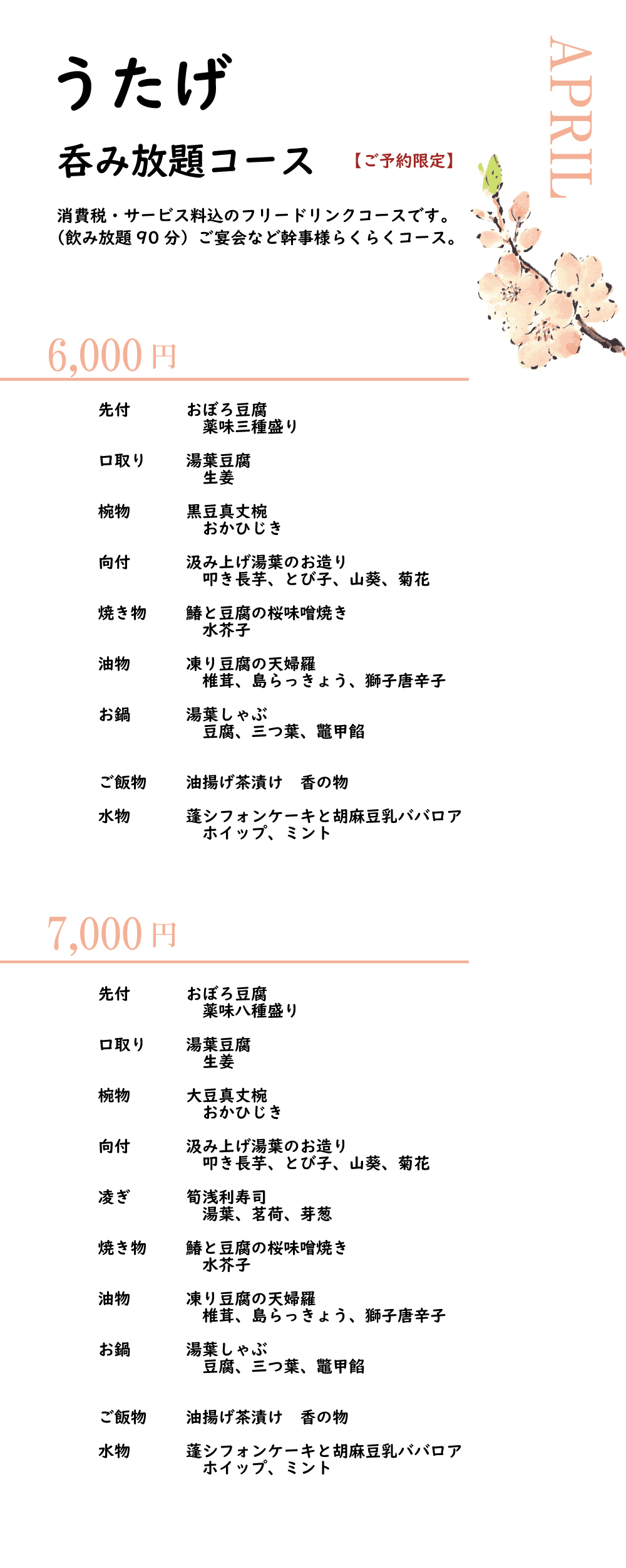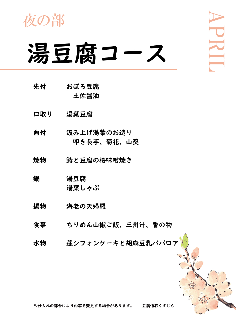 お豆腐・湯葉が持つ本来の旨味を活かしたコースです。