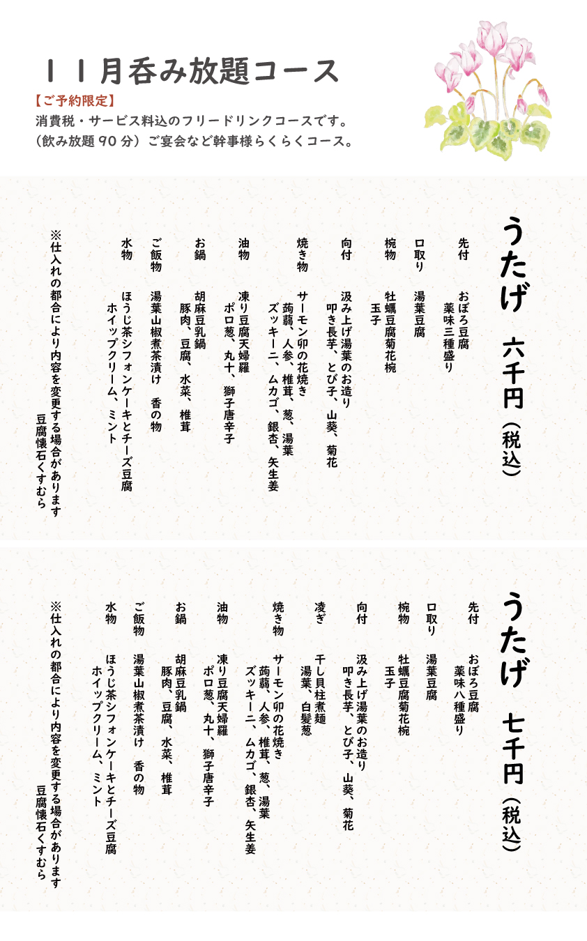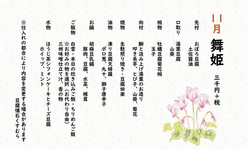 ※おぼろ豆腐とご飯物はおかわり自由となります。