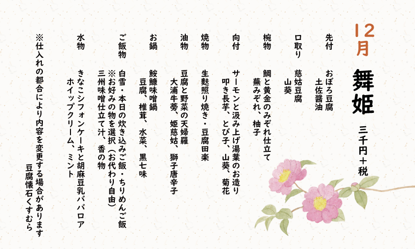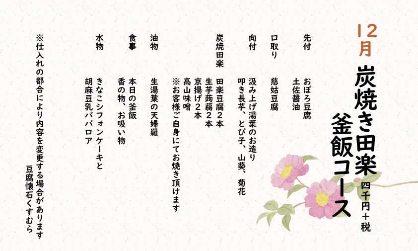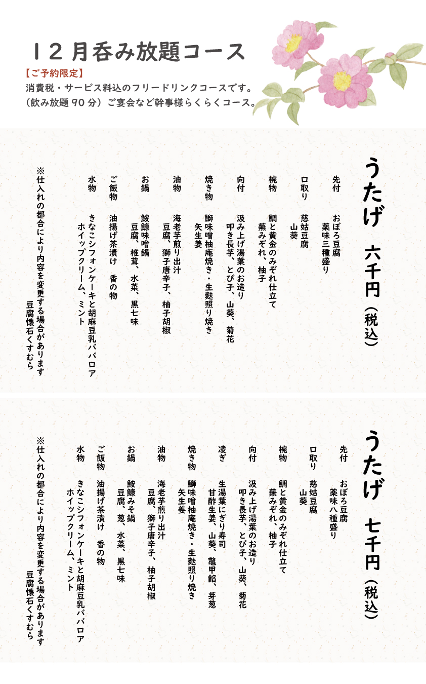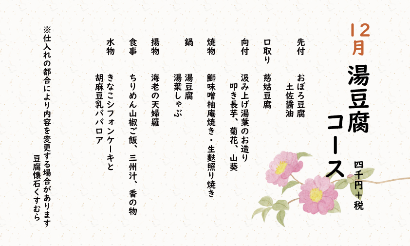「湯豆腐コース」 4,400円