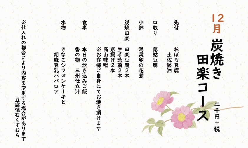 炭焼き田楽コース 2,200円(税込)