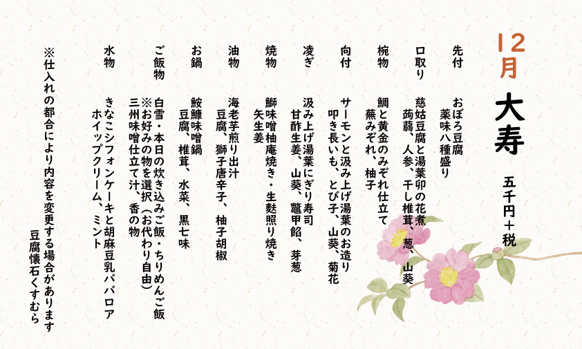 昼懐石「大寿」 5,500円