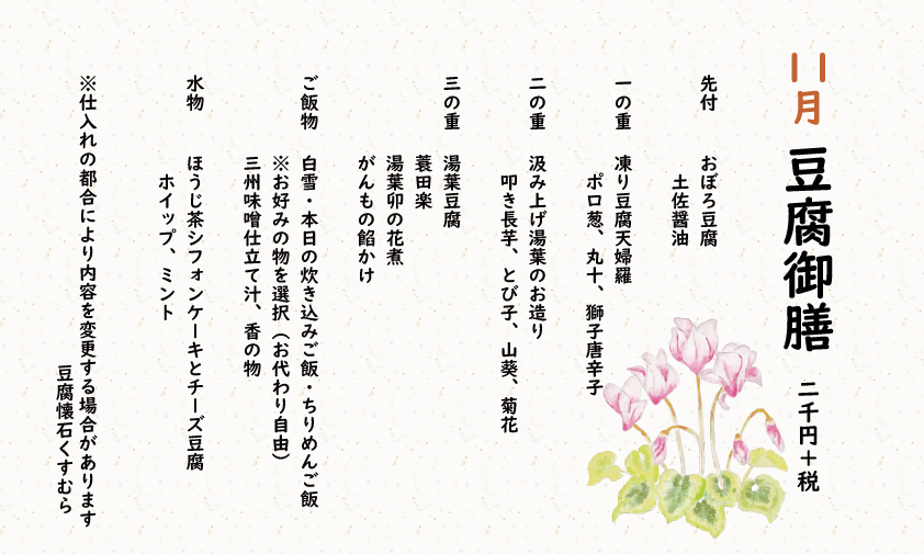 是非この機会に美味しいお豆腐をお召し上がり下さいませ。