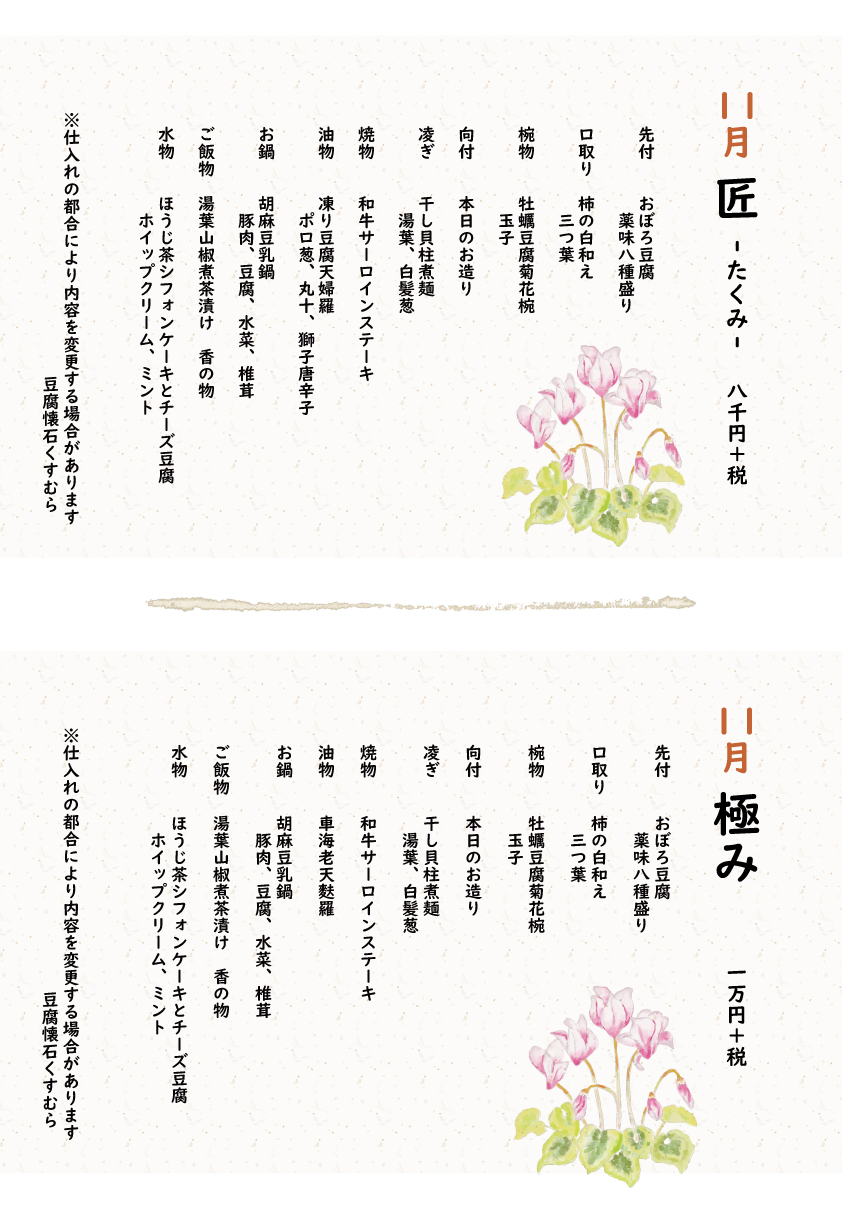 豆腐懐石くすむら 新着情報