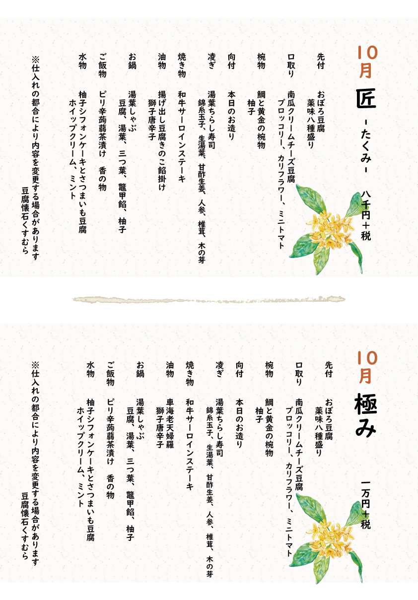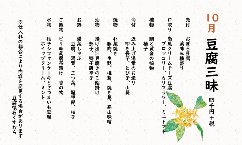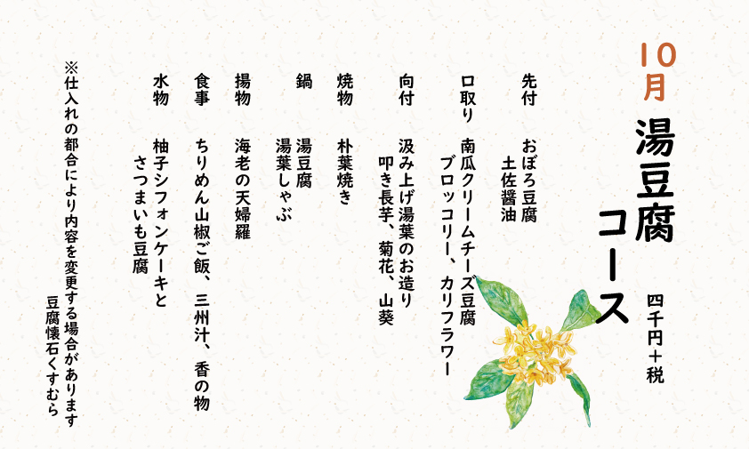 お豆腐・湯葉が持つ本来の旨みをお楽しみください。