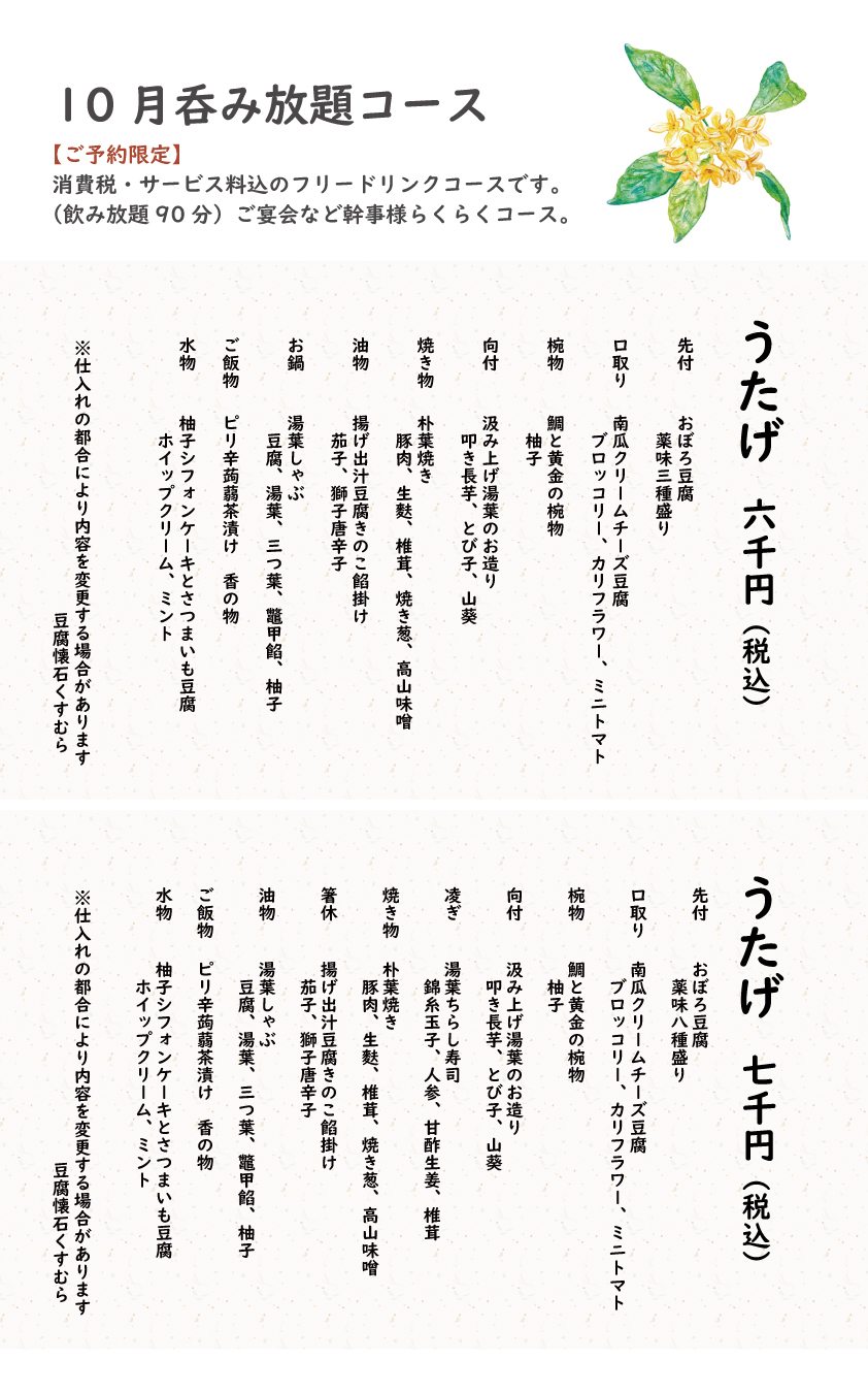 できたてのおぼろ豆腐がお替わり自由でご賞味頂けます。