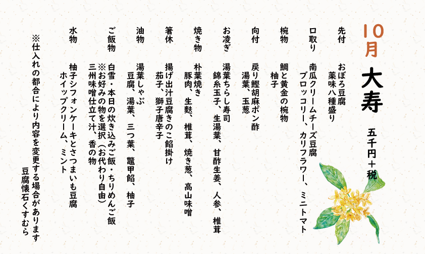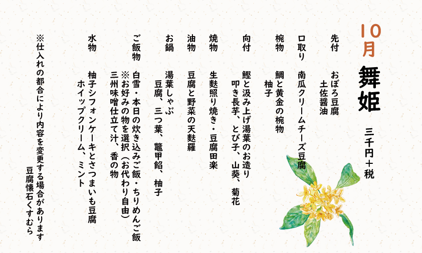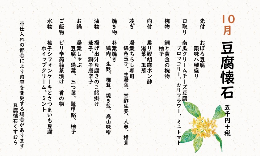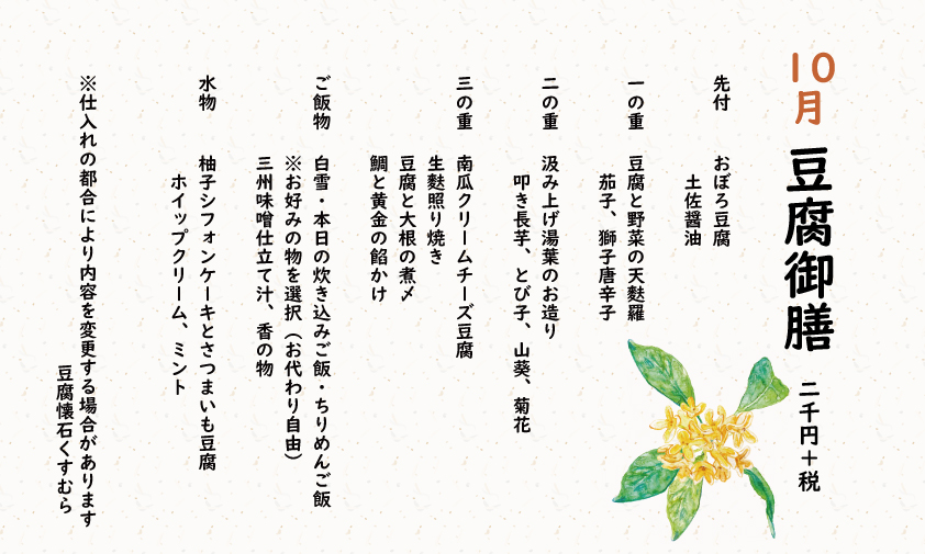 ※おぼろ豆腐とご飯物はおかわり自由となります。