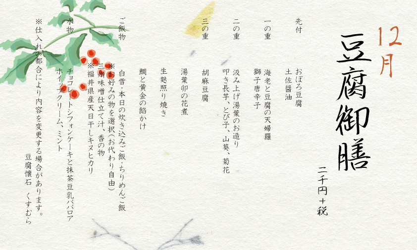豆腐御膳2019年12月