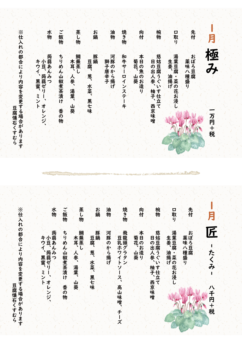 豆腐懐石くすむら 新着情報