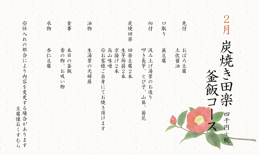 炭焼き田楽・釜飯コース